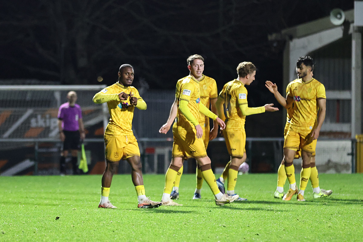 The first five minutes of the second half proved the decisive period as the U’s came out from the break on the front foot, and within 30 seconds of the restart Jake Taylor, Simper and Jayden Harris linked well to release Junior Eccleston on the right and he laid the ball back to Simper, who won last season’s Goal of the Season with an effort against Gateshead and who set up the possibility of a repeat result with a stunning dipping, curling shot from 25 yards out.