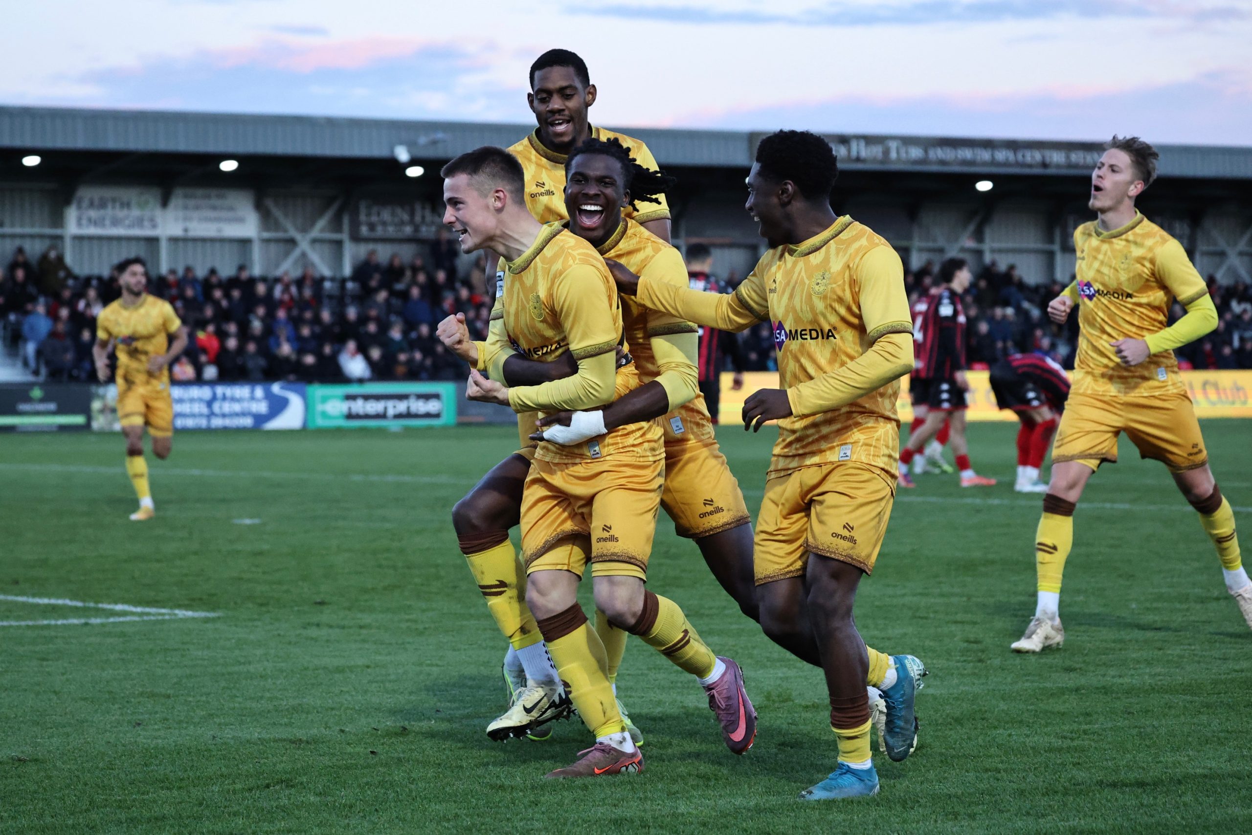 On-loan midfielder Kai Jennings continued his impressive run of form, particularly in front of goal, by sealing a brace late on against Truro; the third and final goal in a topsy-turvy affair that saw the Tinners come back from 2-0 down to level moments earlier through a couple of Lirak Hasani strikes.
