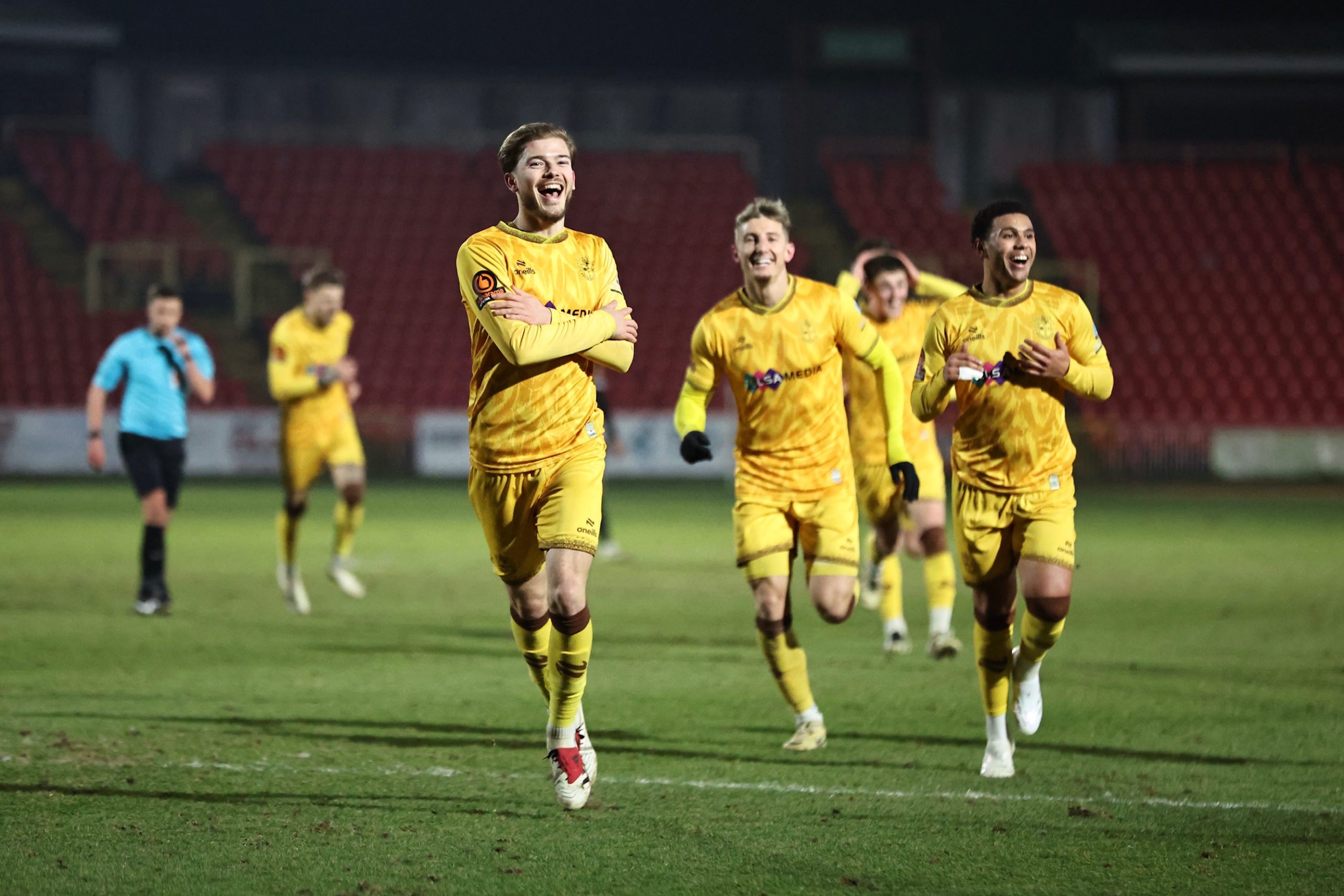 The first five minutes of the second half proved the decisive period as the U’s came out from the break on the front foot, and within 30 seconds of the restart Jake Taylor, Simper and Jayden Harris linked well to release Junior Eccleston on the right and he laid the ball back to Simper, who won last season’s Goal of the Season with an effort against Gateshead and who set up the possibility of a repeat result with a stunning dipping, curling shot from 25 yards out.
