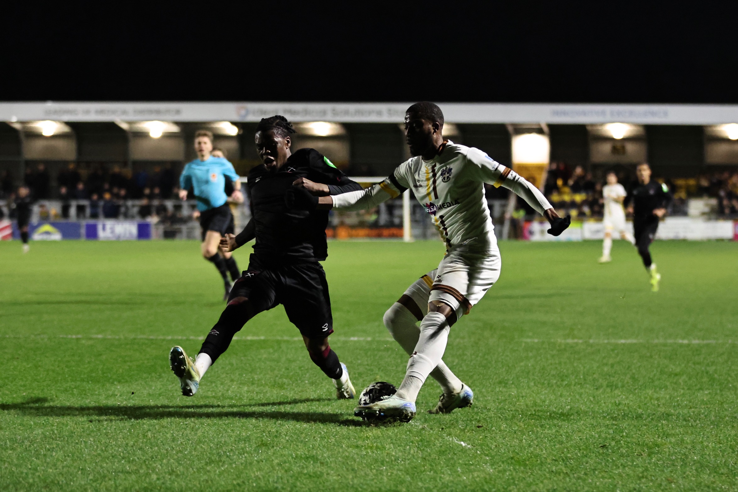 Josh Coley, returning for the first time since being injured in the FA Trophy game against Ebbsfleet, found himself in space in the West Ham penalty area but saw his shot blocked and loop in to the arms of goalkeeper Finlay Herrick, and it was the visitors, playing at a higher tempo than Spurs had a fortnight earlier and much quicker to get the ball forward, who went in front just before the half hour mark when Junior Robinson exchanged passes with Kamarai Swyer to break free down the right and crossed for Ryan Battrum, who shot past Roberts only for Coley to clear off the line, but Josh Ajala was following up and neither Coley or Roberts could prevent his effort crossing the line.