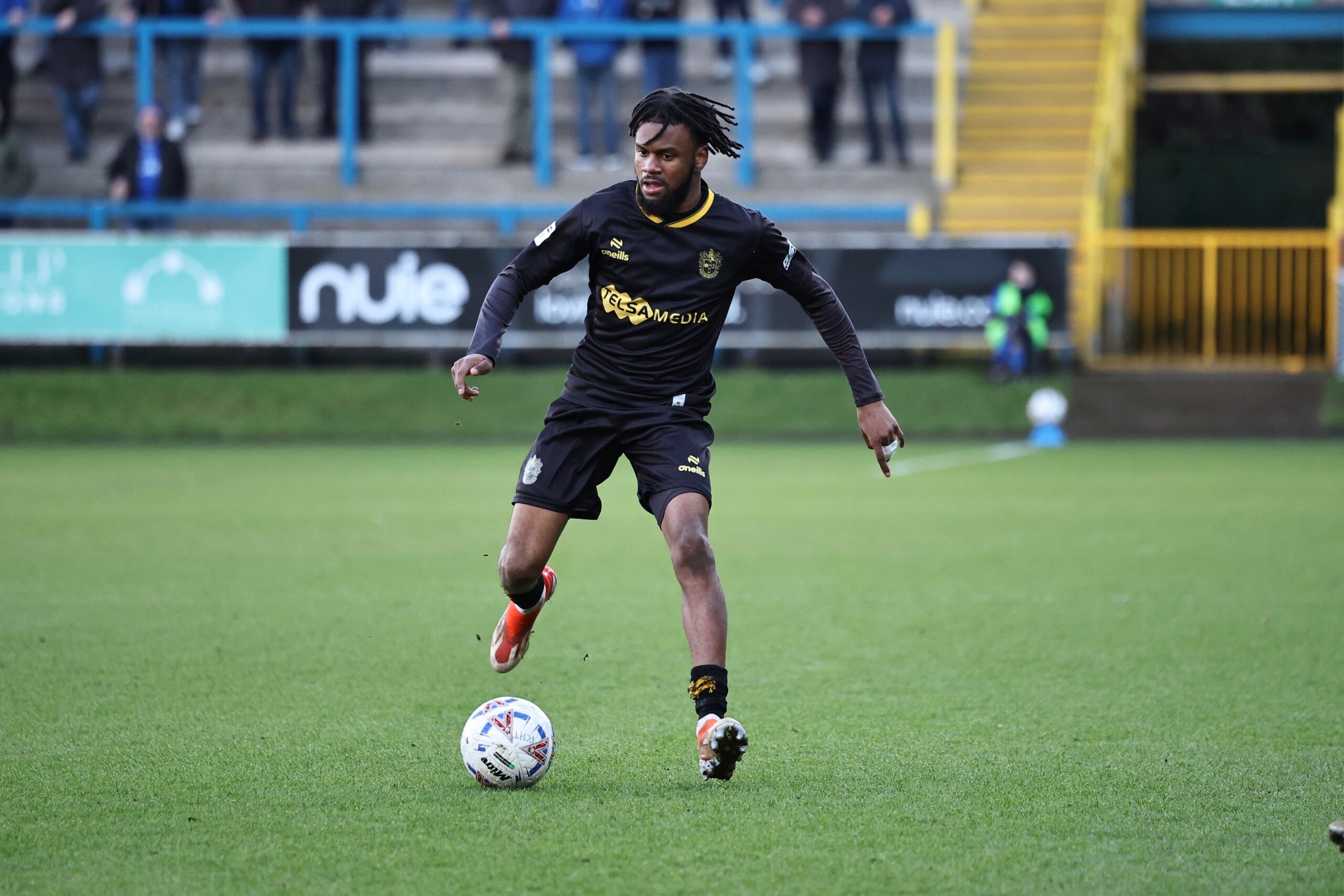 Although Owen Bray should have done better coming in on a right wing cross at the far post, shooting weakly at Jack Sims, Halifax were distinctly second best in the first half hour and their frustration saw a change of formation, AJ Warburton moving from left back to right wing as the home side went to a back three. The change bore fruit within two minutes as Josh Hmami cut in from the left before rolling the ball to Cody Johnson, whose shot from the edge of the penalty area beat Jack Sims to his right and went in off the post. After Foyo had seen a shot saved, the lively Johnson came close to a second on the stroke of half time with a dipping shot from the corner of the penalty area that came back off the angle of post and bar, and Will Harris’s follow up was somehow kept out by Sims with the help of his post despite claims from Halifax that the ball had crossed the line.