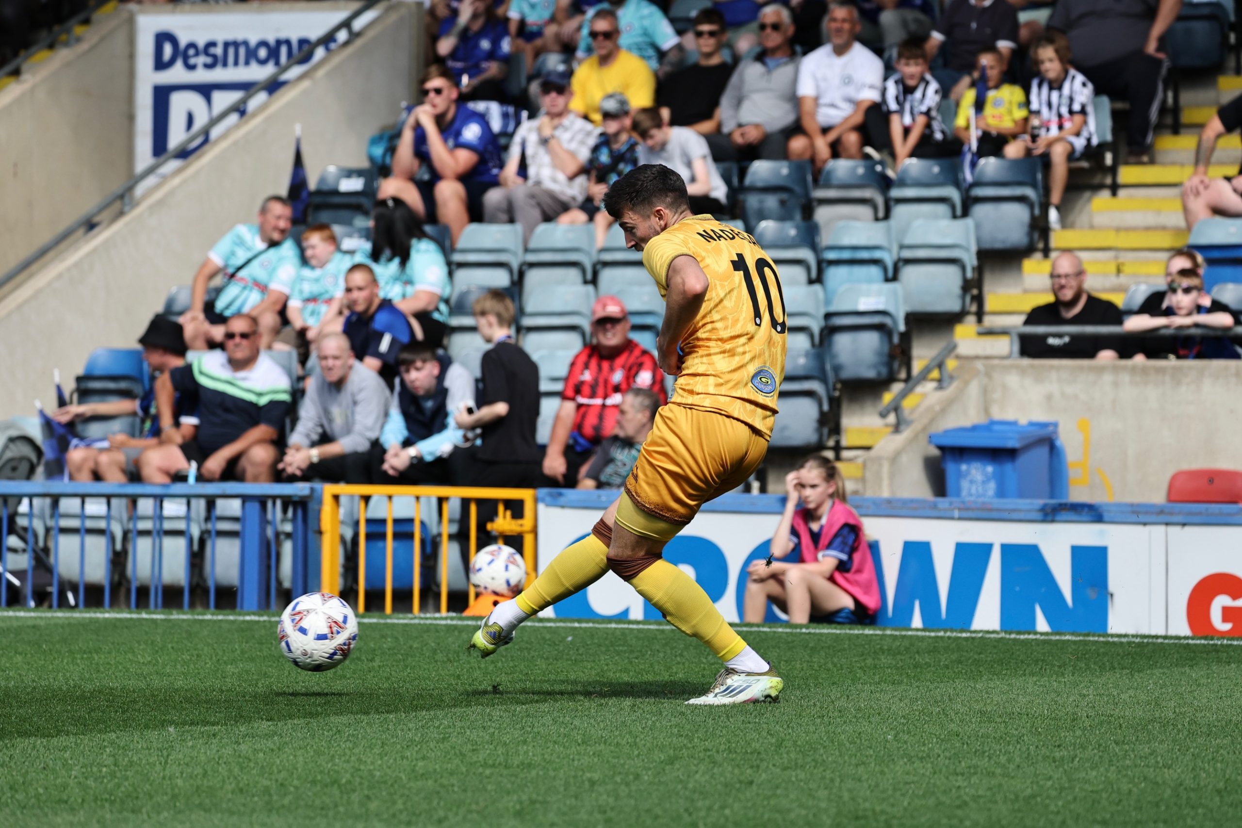 There were first league starts of the season for Junior Eccleston and Jaiden White, and a first appearance of any sort for Mo Dabre as U’s, without the suspended Liam Vincent and the injured Eduino Vaz, lined up with a back four, Edon Pruti at left back and Dabre alongside Wadham in front of the defence, and there were few alarms early on in a game that struggled to rise above walking pace in the opening quarter. However Rochdale, who for the second consecutive league game changed all eleven of their starting line up after Saturday’s defeat at Brackley, began to create chances as Joe Pritchard placed a shot just wide after finding space on the left of the penalty area, and Devante Rodney produced a similar miss after the otherwise excellent Eccleston’s slip had allowed Pritchard to cross from the left.