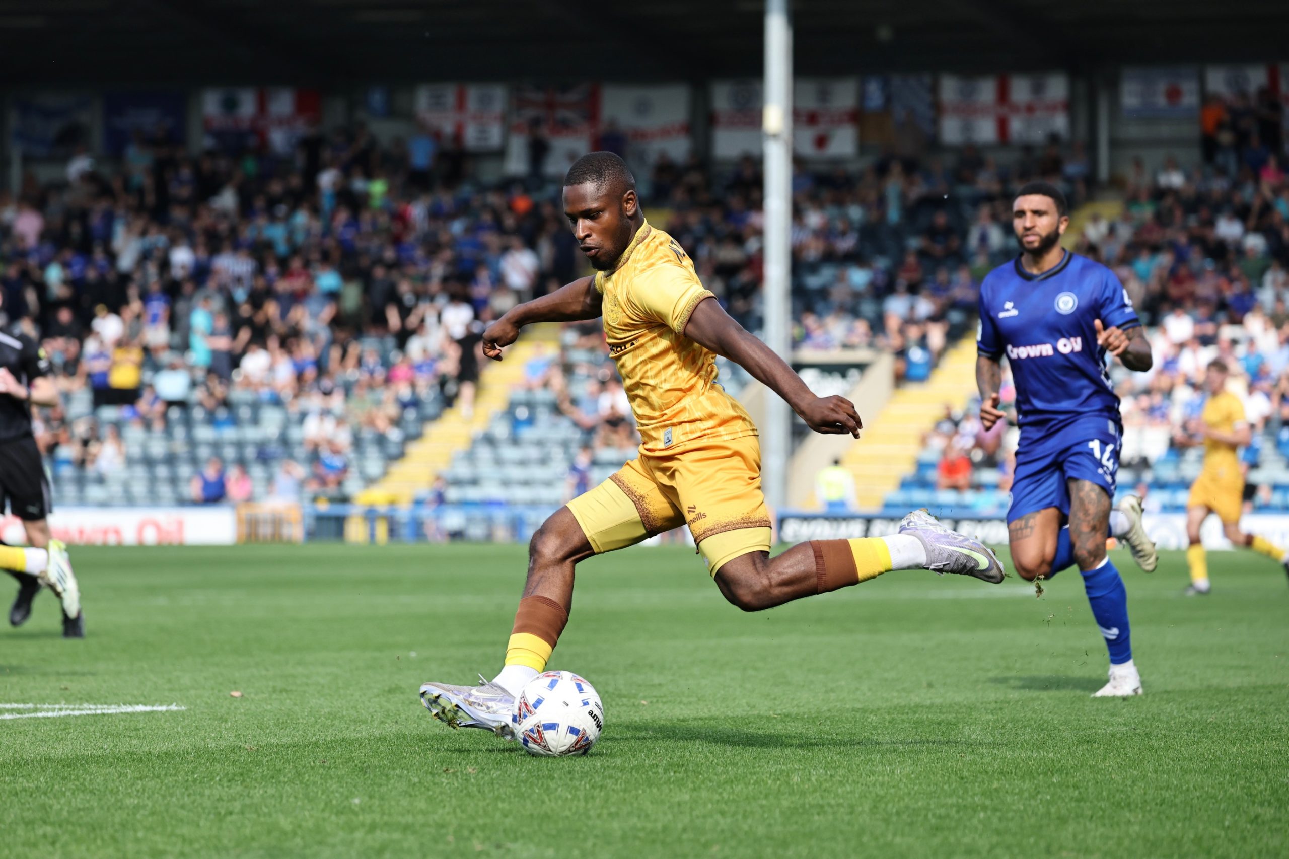 Between those two chances Jack Sims tipped over a long range Sam Beckwith shot, and there was also a chance for Ethan Ebanks-Landell, who glanced a header just wide from a corner that looked as though it should have been a goal kick, Rodney appearing to slice the ball out himself rather than it deflect off Taylor. Sutton’s best chance of the half came just before the break when a Pruti cross fell to Lewis Simper, whose miscued shot bounced in to the ground and over the bar,.
