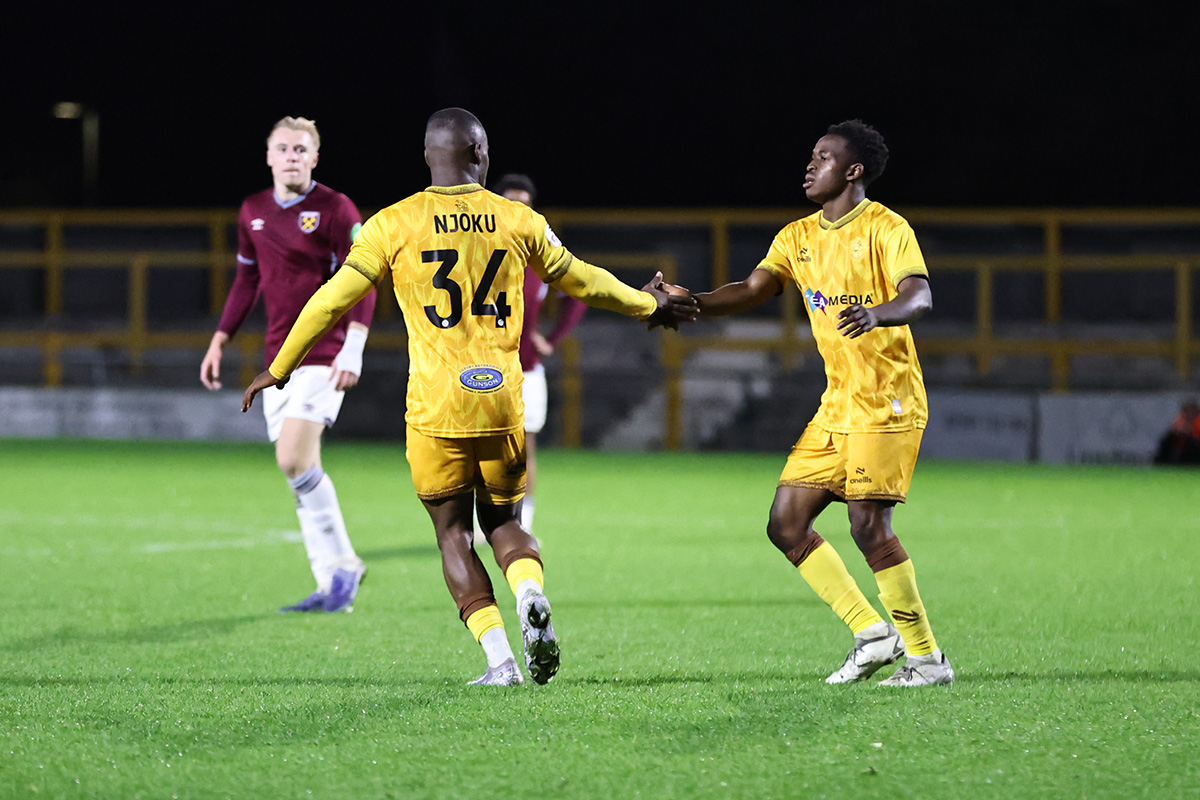 The game came to life with five minutes to go when Boutin crossed deep from the right, substitute Junior Eccleston headed powerfully back across goal and Jayden Harris turned the ball past Krisztian Hegyi in the West Ham goal. West Ham immediately went to the other end, Tizzard fouled Jethro Medine, and Josh Ajala, who had scored one of West Ham’s goals in the meeting between the sides last season, converted the penalty. It wasn’t the winner, though, as with the game entering six minutes of stoppage time Dabre dispossessed Airidas Golambeckis and raced clear on the left before squaring to Njoku, who from close range ensured that a 3-3 scoreline was back on the big screen.