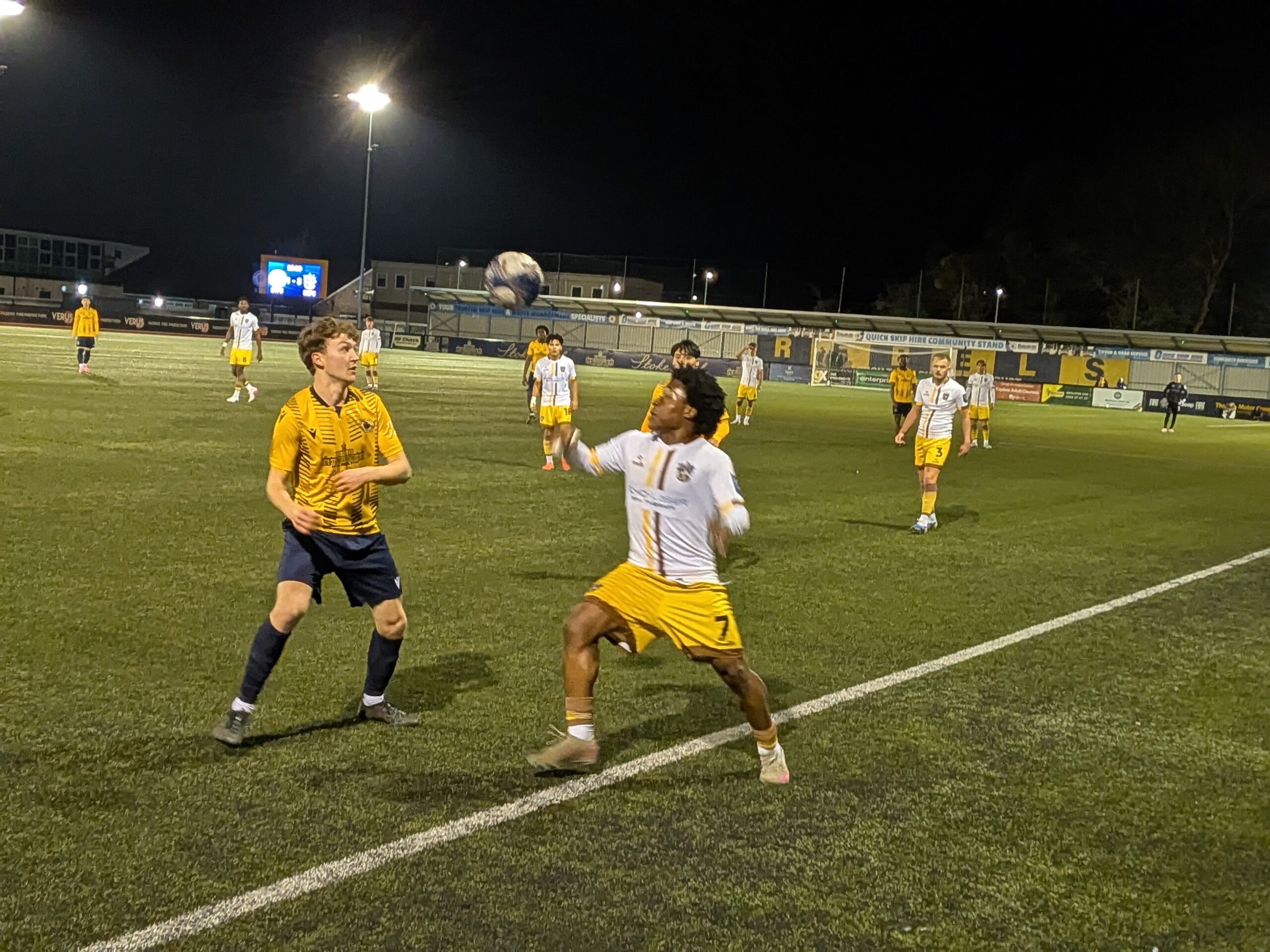 Slough should have equalised when Ethan Mosdell misdirected a free header from a free kick, and Dan Urpens made a fine recovery tackle to deny Pedro Sami a way through after being dispossessed by the Slough player on the edge of the penalty area, the home team’s penalty appeals being turned aside. U’s went straight to the other end and Urpens was again the key figure, heading in from close range after goalkeeper Bob Honey had failed to deal with an Adam Reeves corner.