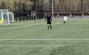 In the first quarter of the game it was Oxford who had the better of things, enjoying plenty of possession but unable to find a way through a solid Sutton defence, but against the run of play U’s took control with two goals in little more than a minute midway through the first half. Rashaad Drysdale’s cross shot was tipped away by the Oxford goalkeeper for the first of three corners in quick succession, the third of which resulted in a throw in, and when Dan Urpens launched the ball in to the penalty area it was cleared as far as Drysdale who hammered a shot back past the keeper with the aid of a slight deflection. Having scored the first, Drysdale then created the second a minute later, his pass allowing Kai McKenzie to lift the ball over the advancing keeper in to the net.