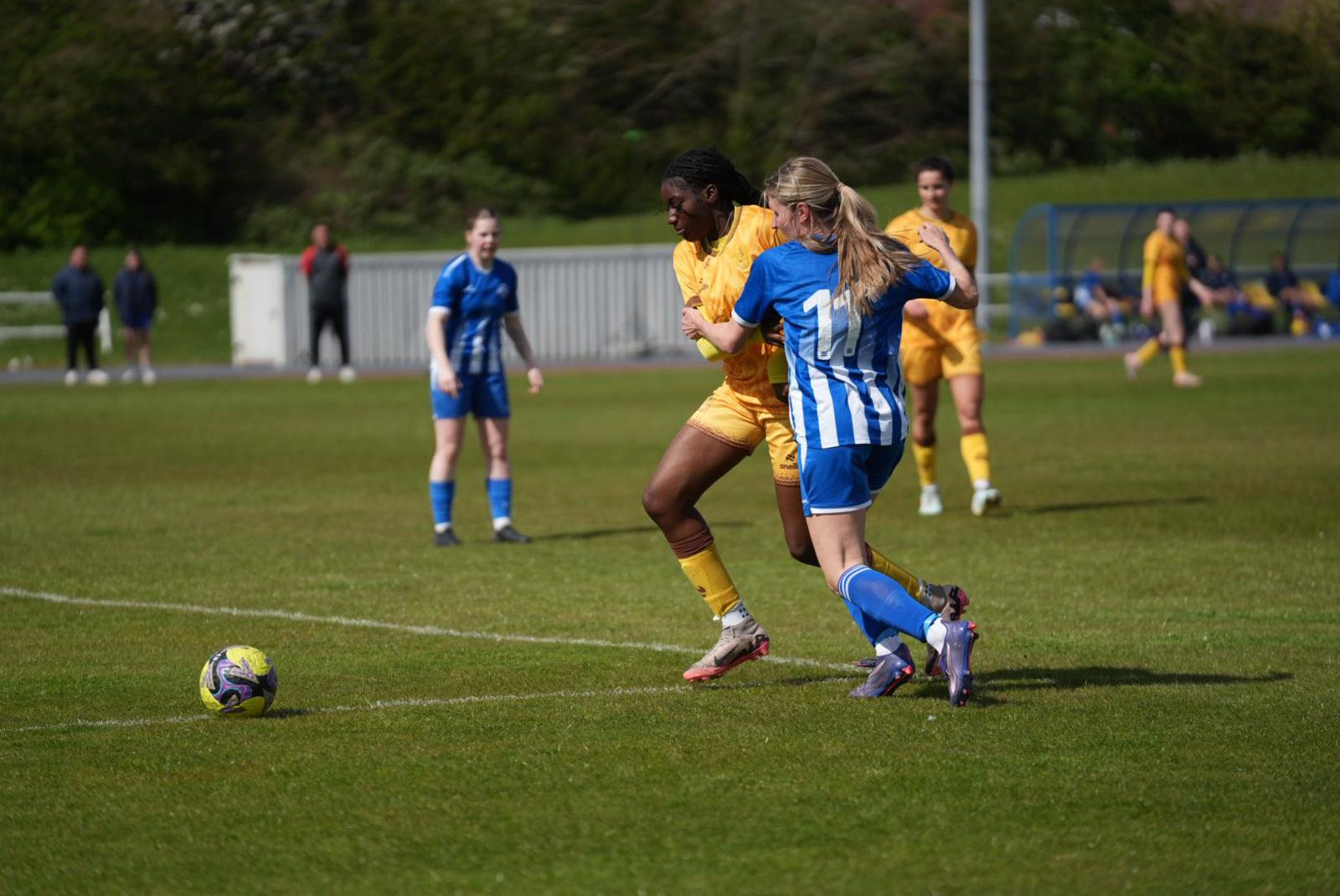 Sutton went in front in only the fourth minute when Millie Cutler beat a defender to a neat flick from Brianna Gilbert-Lawal and lifted the ball over the goalkeeper from a narrow angle on the left. Aylesford came close to an equaliser when a corner flicked off Emily Oliver’s head and hit the bar, but they did level on the half hour when a forward chased a through ball, held off the challenge of Louise Dunne and beat Lizzy Knight with a shot that had just enough power to cross the line before Oliver could clear.