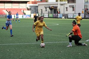 K’Shaela Burch-Waldron scored twice as Sutton progressed to the first round proper of the Adobe Women’s FA Cup with what was ultimately a comfortable victory, although Penn & Tyler’s Green gave U’s a big scare by taking the lead inside two minutes with a well placed shot over goalkeeper Megan Taylor.