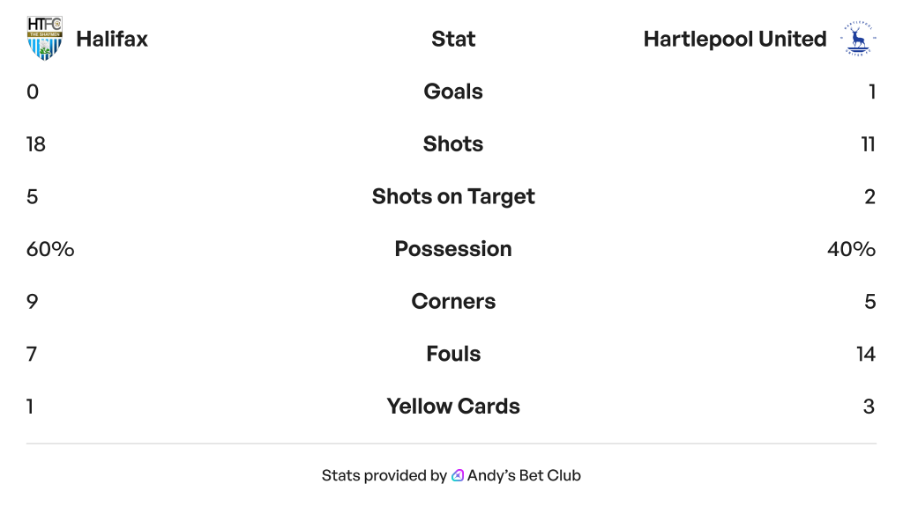 Andy’s Bet Club’s football analyst will break down Halifax’s recent clash with Hartlepool, to see what the statistics indicate about how they might set up against Sutton United.