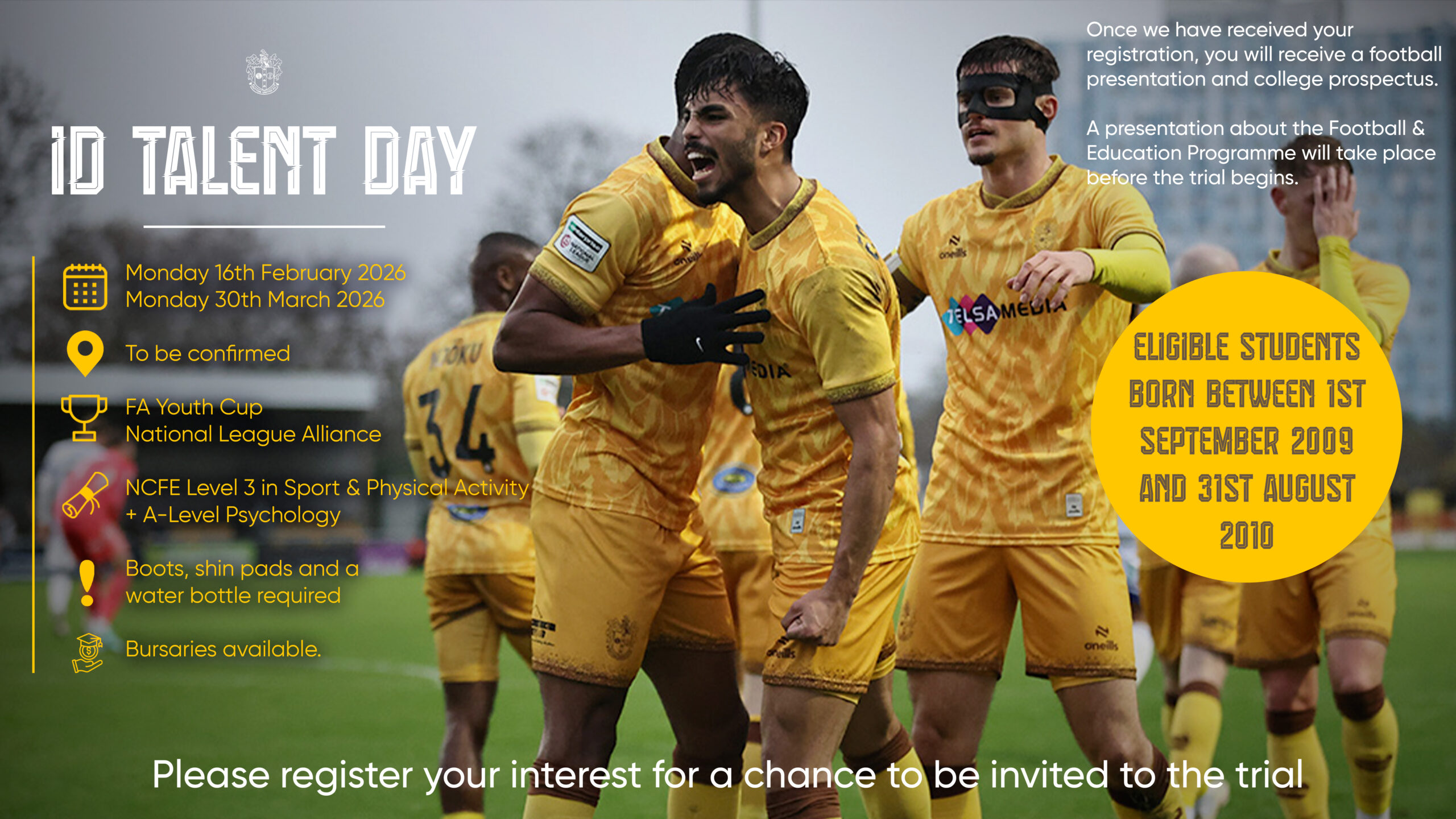 Click here to register, with limited spaces at Sutton United Football Club – Secure your place today!