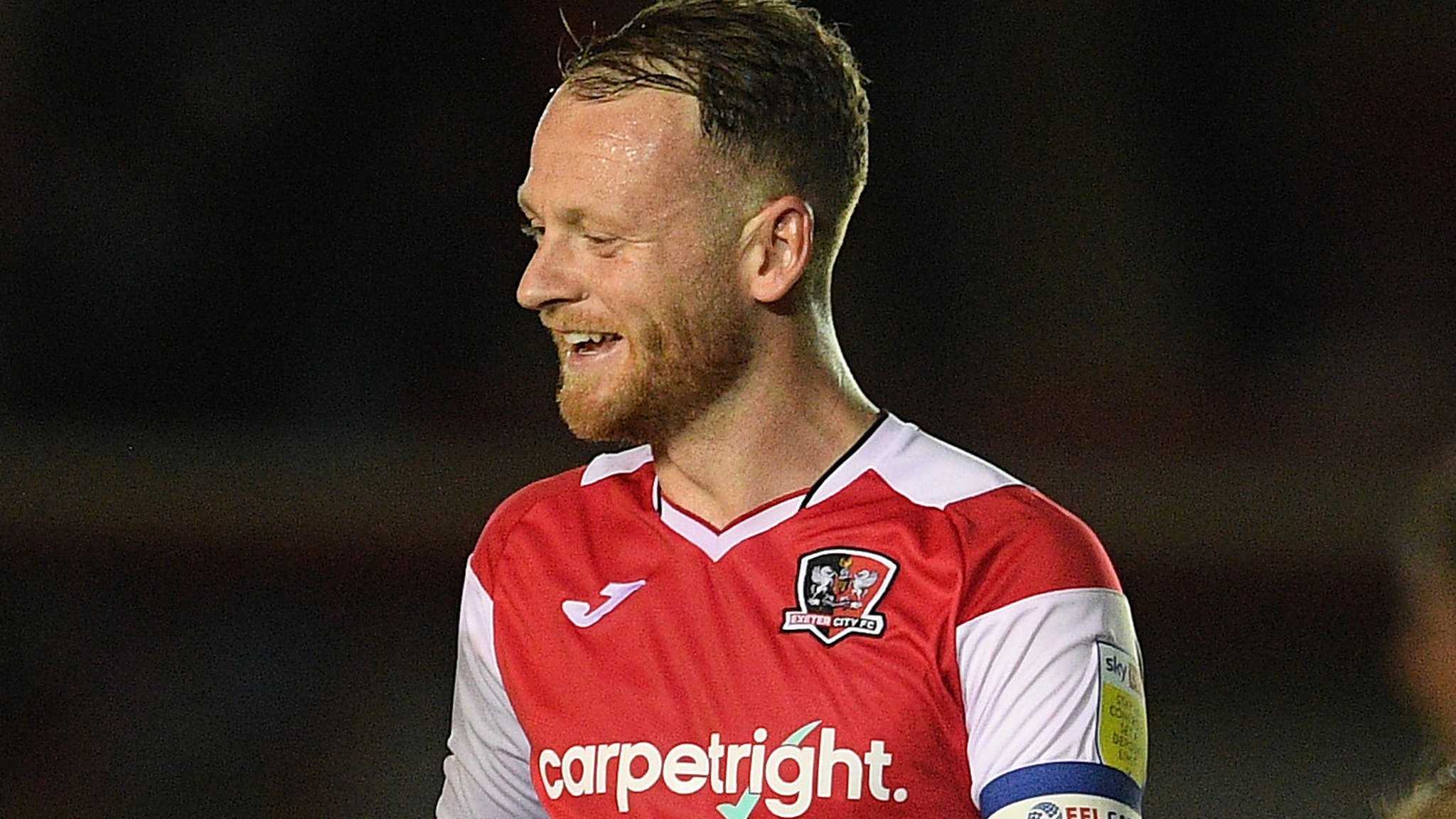 In his first full season as a permanent Grecian, he made 51 appearances – helping Paul Tisdale’s men reach another Wembley Play-Off Final – only to suffer defeat at the final hurdle as Blackpool pipped City to a place in League One, but had nonetheless established himself as a fan favourite at St James’s Park, and operated as club captain at the heart of Exeter’s midfield from 2018 onwards, being appointed upon the appointment of Matt Taylor as boss.