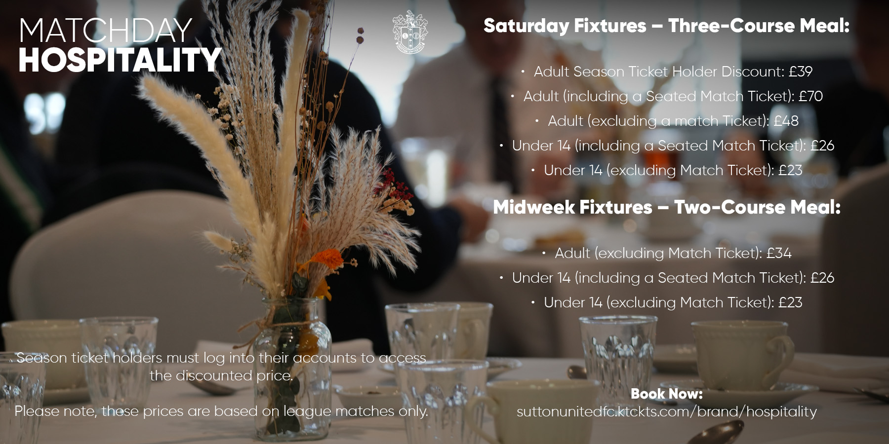We are delighted to confirm hospitality prices for the 2025/26 season.