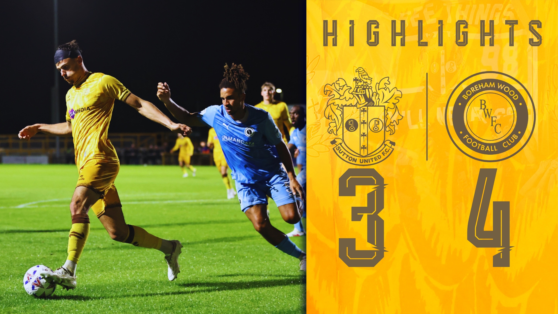 Watch pitchside highlights from Sutton's defeat to Boreham Wood.